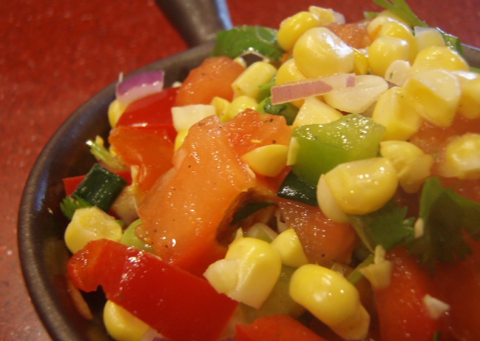By cheflandria2009 This is really a simple recipe and similar to a salsa but with corn. It goes well as a wrap or toppings on buckwheat crusts or hemp chips. It's so versatile. I chop up lettuce and have it with steamed Bhutanese rice or quinoa.