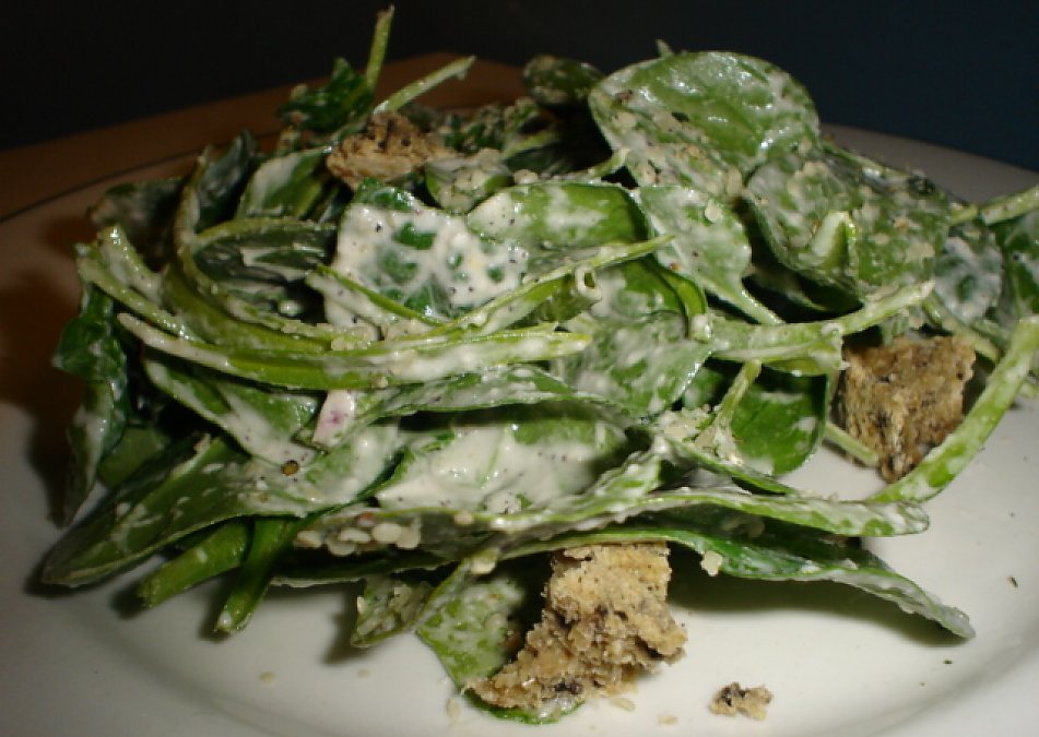 Toss with Romaine or Spinach, the extra hempseed, and hoemmade croutons, if desired.