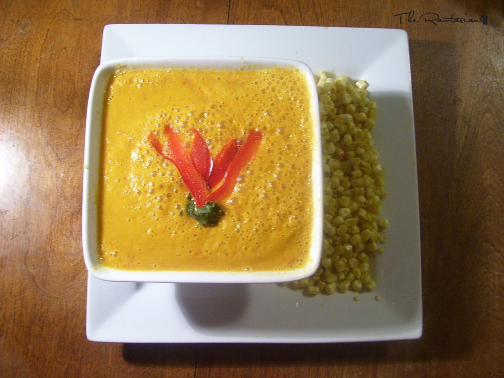 I am definitely going to try this for supper tonight! I CRAVE soups .. I think I might use some almond milk for the liquid, and put a little bit of grated ginger in too, just for some more heat. I'm new to raw foods (a little over 5 weeks now) and living in Western Pennsylvania, it gets chilly here in the fall and winter! I don't know how I'll be without the warmth of soups, but I figure using more hot peppers, garlic, ginger and spicy spices might help me get the warmth that I want. I'll let you know how it goes!