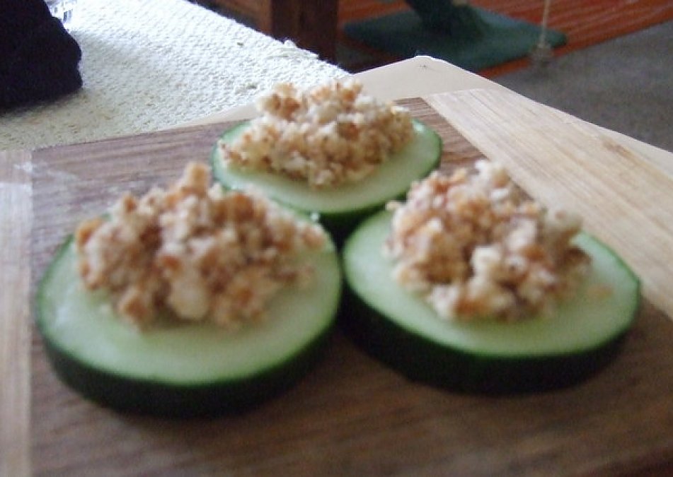 I was craving this special type of miso that we used to eat in the summertime in Japan. It was a little sweet, with barley, and sometimes chopped veggies in it,and we would spread it on cucumbers.The miso by itself wasn’t substantial enough, so I just mixed in some nut meal (brazil nuts).