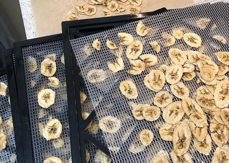 These banana chips are perfect for an on the go snack. They are a sweet and chewy with a little crispness to them. Very satisfying when doing mostly fruit diet.