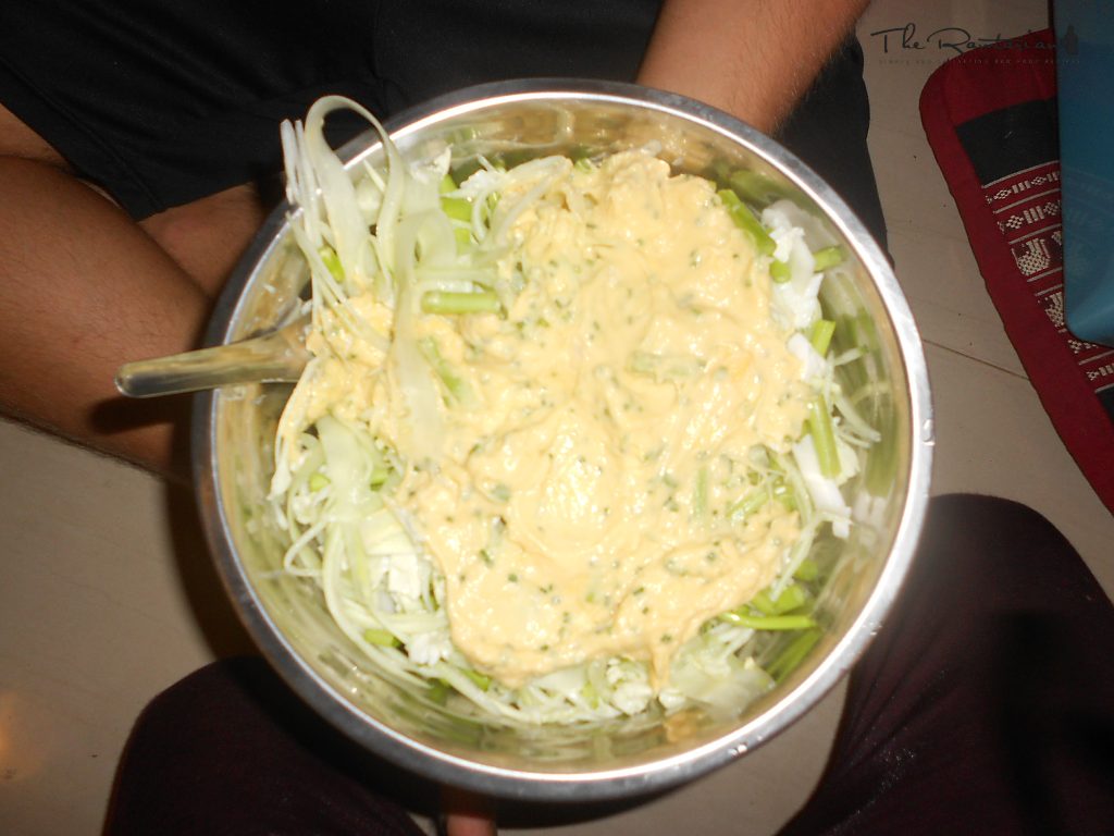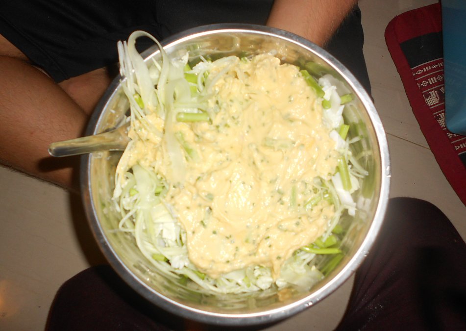 3. Finely dice 1 bunch of chives. Mix into the durian.
