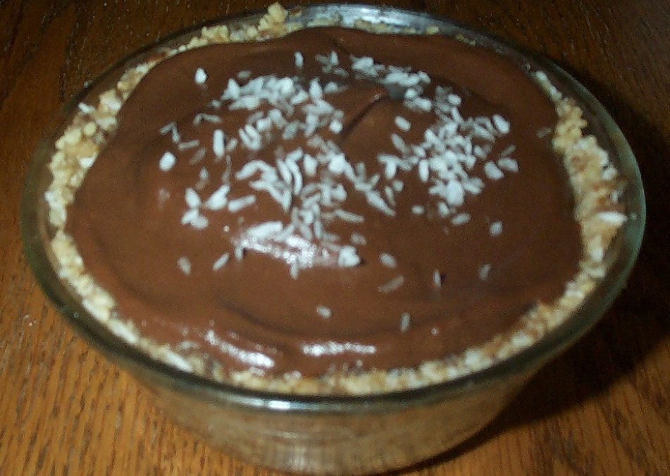 Or put it in a nut and date crust for a quick, easy, and delicious chocolate pie like in the picture.