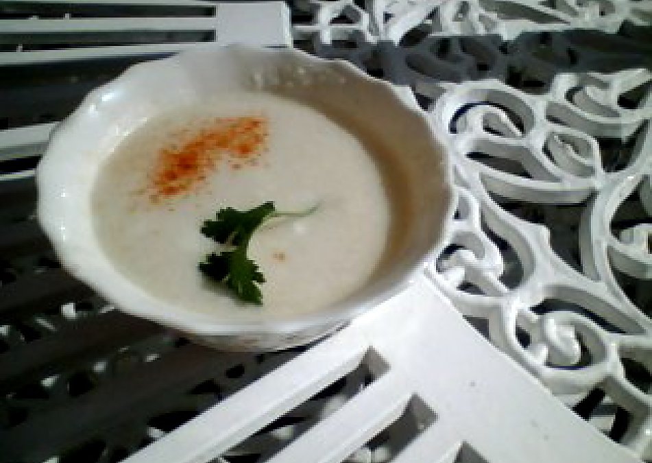 A delicious and simple soup that took me under 5 minutes to prepare (not including cracking the coconut open).