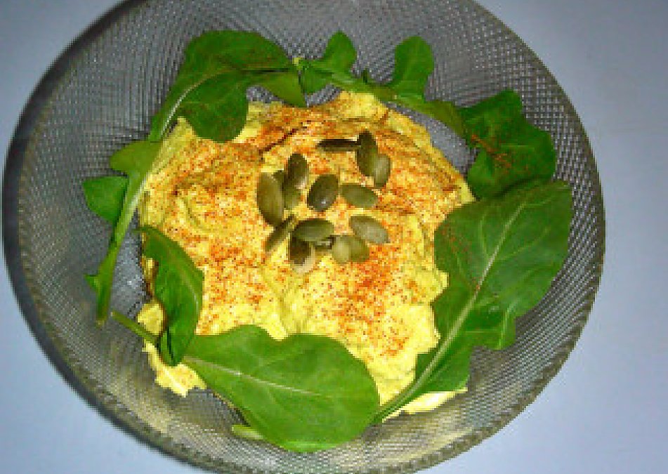 I've seen this recipe before, but didn't possibly think it could taste like egg salad...surprise surprise!!!! It did!!! I am so thrilled because I love egg salad and deviled eggs but can't eat them any more. I used flax seed crackers to dip them up, but I think I'm going to make a sandwich out of it with raw onion bread and maybe top with tomatoes...yum...
