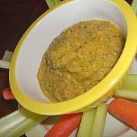3. Blend mushrooms, sun-dried tomatoes, basil leaves, Nama shoyu, olive oil, and nutritional yeast in food processor. Whiz it all up until it is homogeneous and looks like ravioli filling. Add Nama shoyu as needed. Fold in chopped yellow pepper. Pat eggplant slices dry of extra marinade and lay them out. Place a healthy dollop of filling on each slice and roll up like manicotti.