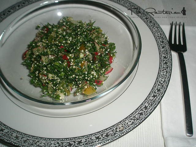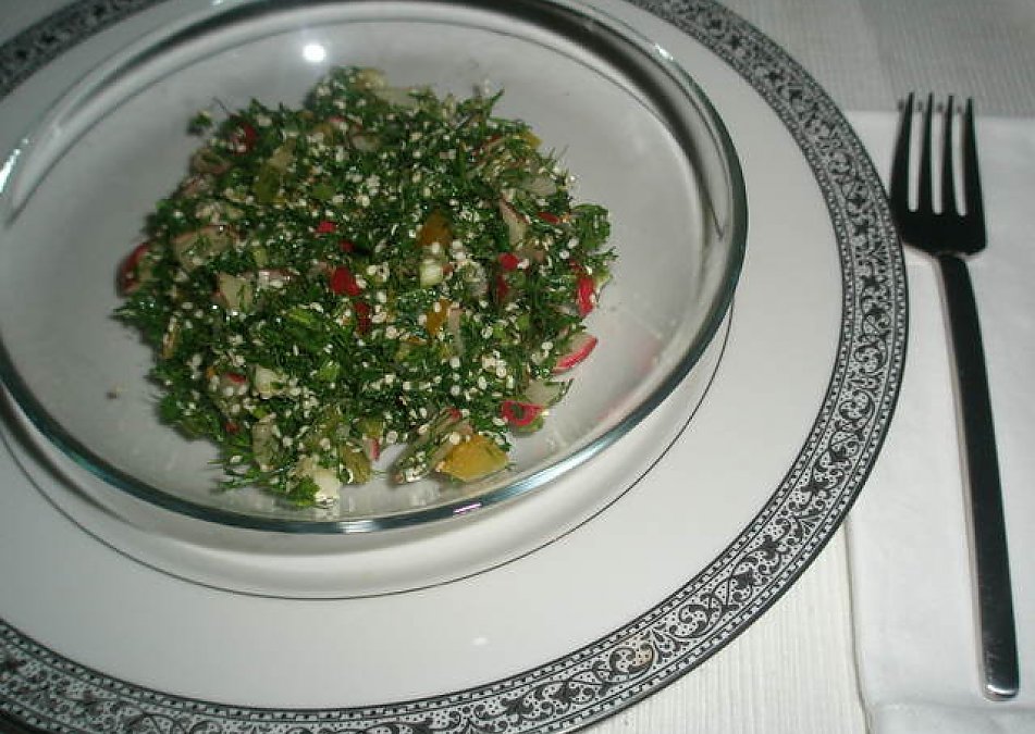 This inspired by Tabbouleh, originally is an Arabic dish though also popular in Brazil as tipili. Here is Russian twist – in place of cracked wheat, are hemp seeds and additional herbs