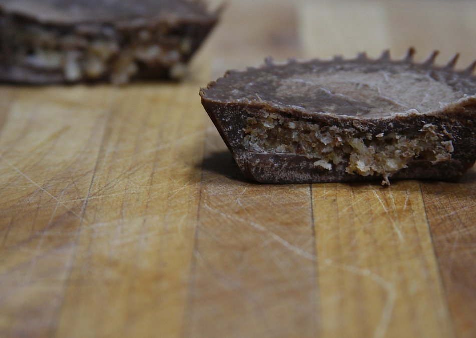 3. Mix the filling in the food processor and put into the set chocolate molds, leaving a little room at the edges.