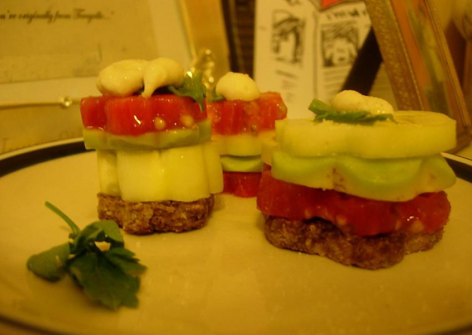 By harmonylia This is a TOTAL STOLEN RECIPE from all over this site. I take no credit what so ever. Please let me introduce my brilliant Raw Chefs who have to take total credit. Here is the fabulously delicous Kanape sandwich by grsshopper, they are fabulous, please check the recipe on the board. Followed by Renoir’s gorgeous Better than sliced bread and finally topped off with Kandace’s deliciously creamy cashew mayonnaise. I merely stole and threw together. They are devine, and so are the recipes that went into making this. LOL, anyway, here it is.