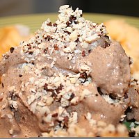 2. Add more ice to make colder and icier and less or more water if you want thicker or thinner. When you are done, there should be a chocolatey milk with some coconut shreds still surviving and floating on top like a frothy layer.