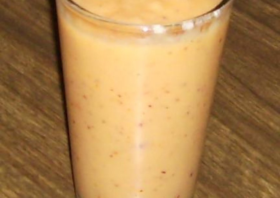 The red flecks in this come from the apple peel (my $20 blender left them in). A better blender might reduce these to a non-visible state, or you could just peel the apple first.