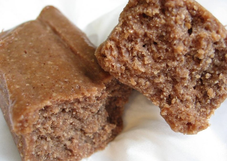 4. Shape these bars as you wish. What’s pictured was packed into a Ziploc, rolled out to look like a thick sausage, and then vaguely squared at the corners.