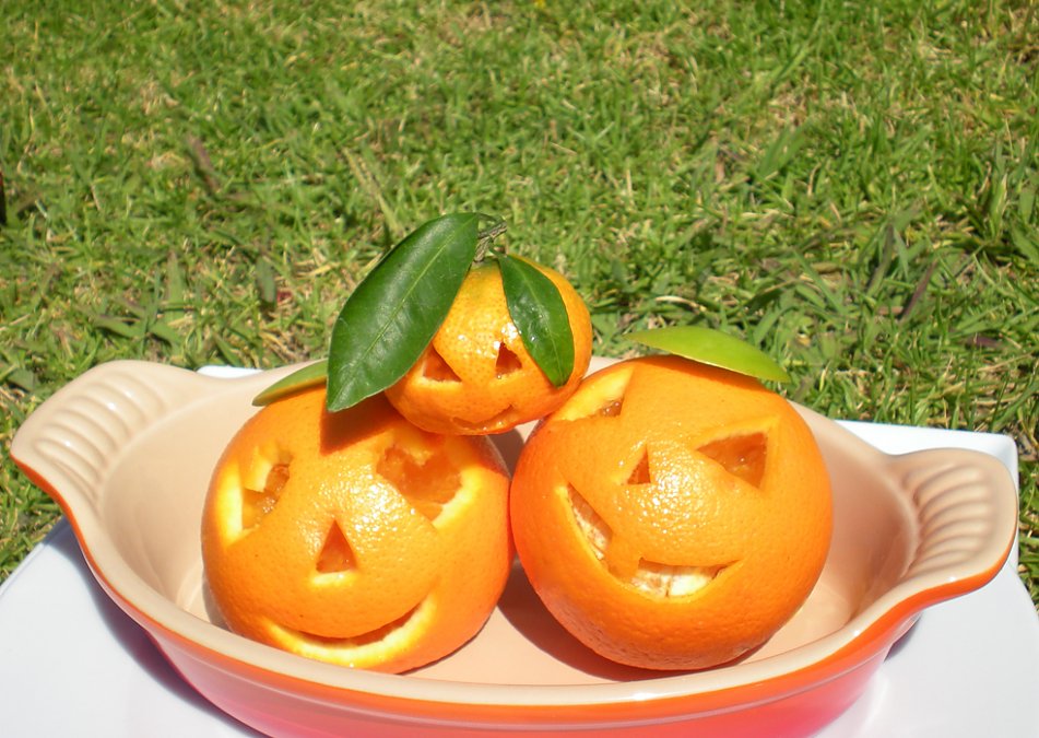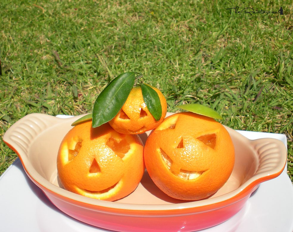 Halloween is a fun time of the year and brings out everyone's creativity! Well Pumpkins are fun too but are heavy, messy, and well I came up with a fun easy Organic Orange Jack-O-Lantern! Made out of Organic Oranges, Green Apples and love.