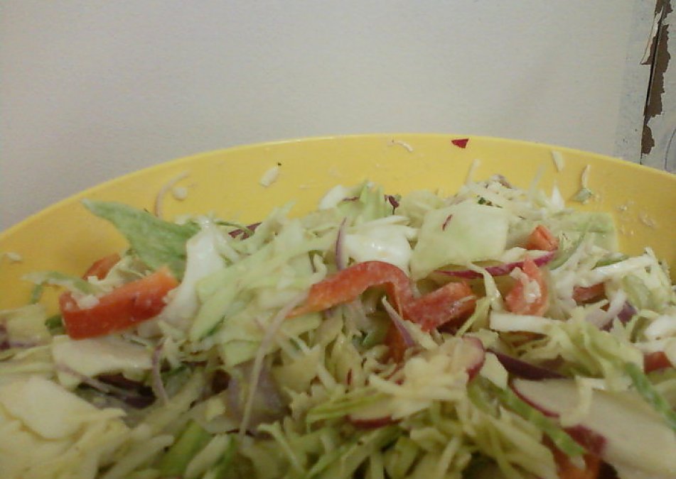 This slaw is low in Sodium, and very low in Cholesterol. It's also a good source of Dietary Fiber, Thiamin, Vitamin B6, Phosphorus, Potassium and Manganese, and a very good source of Vitamin A, Vitamin C, Vitamin K and Folate.