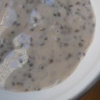 By Fee i had a ripe mango that needed using and no yoghurt of any sort (soya or almond or cashew) to go with it so I decided a chia pudding would be nice and then decided to blend the mango in rather than chopping it on top.