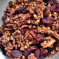 By denzildragon Simple, healthy granola. Since it’s already so nut-heavy, I generally serve it with nut milk, plus a handful of raisins.