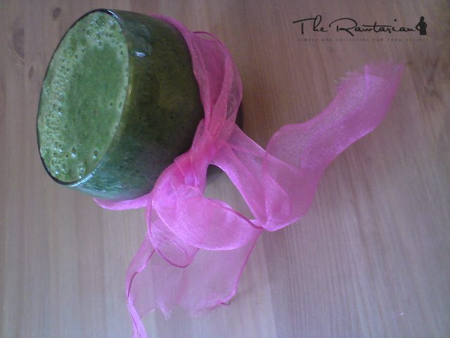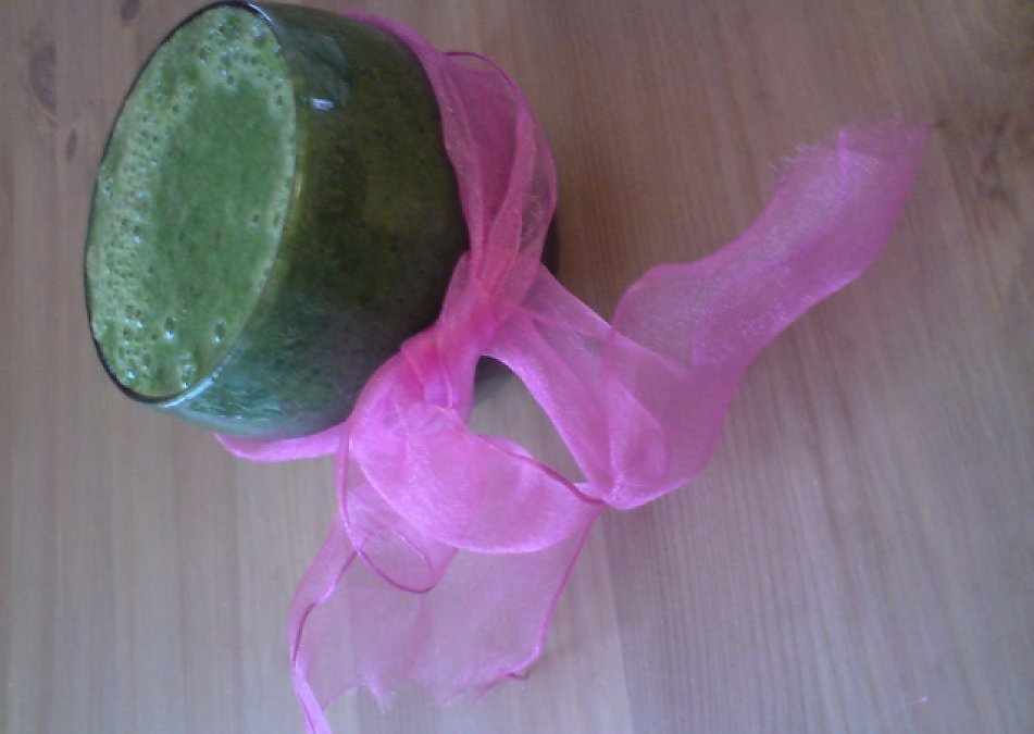A delicious sweet green smoothie with a taste that reminds me of bubblegum.