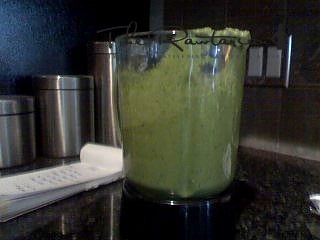 By LaLaLizoo Start out with the fruits in blender with about 1/4 cup of water to get a nice base going. Then slowly add ingredients in whatever the heck order you want until a nice non-chunky green…unless you like it chunky, in which case: LEAVE IT CHUNKY! May finish with chunks of apple to eat like soup. Mmmm juicy.