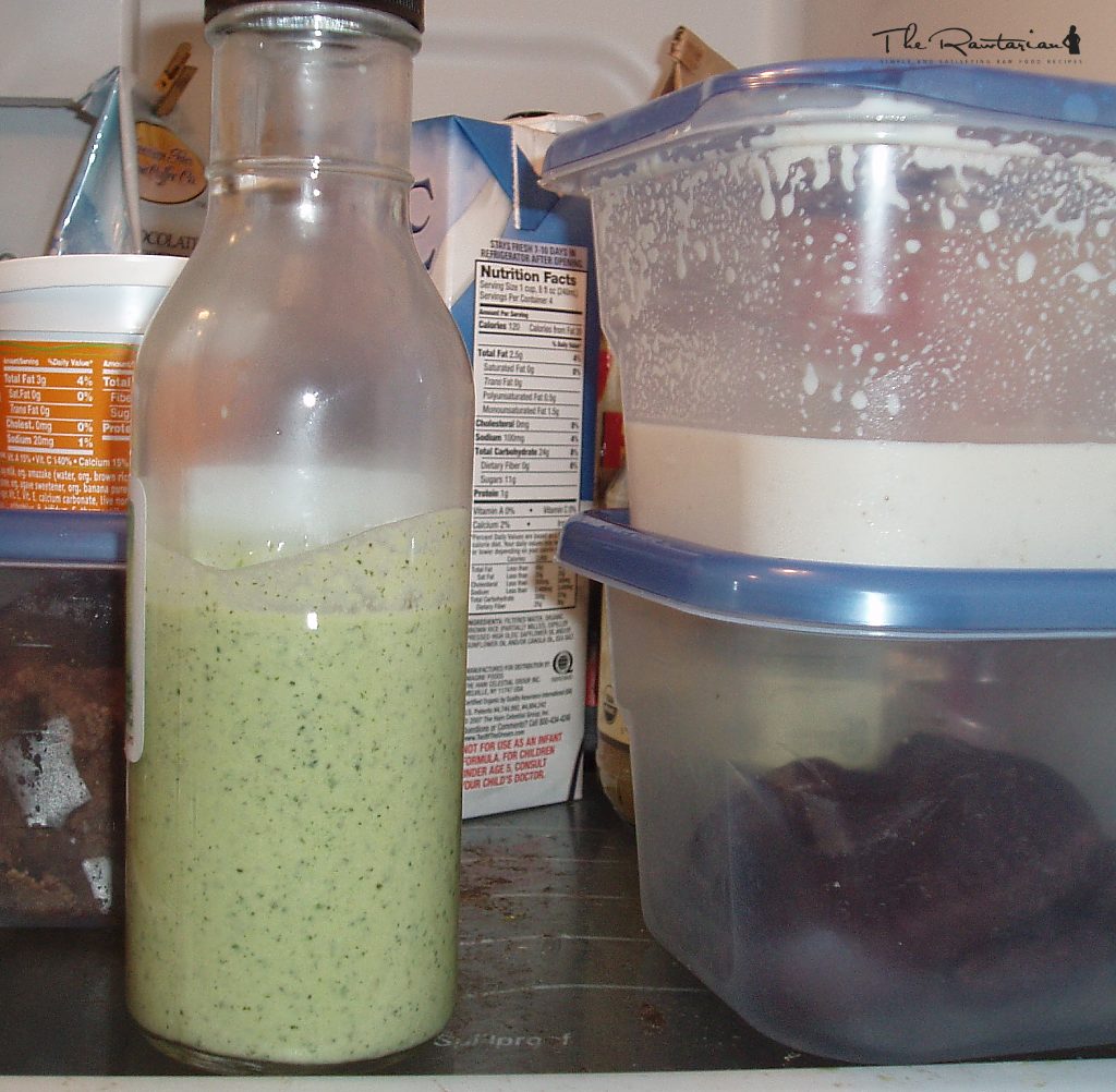 By bitt I got a similar dressing from the raw restaurant in Seattle called Chaco Canyon. It had garlic in it and my husband is allergic so I made this garlic-free version for him. I love the tang of the vinegar and mint.