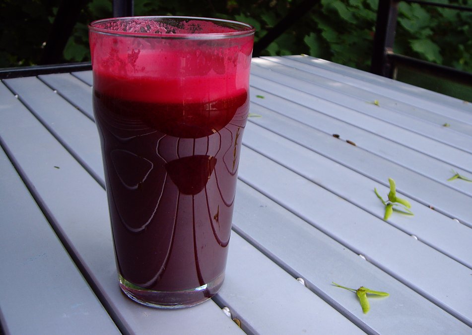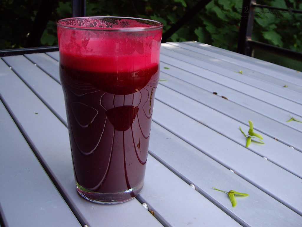 A shimmering rhodamine juice, great for drinking outside under the trees.