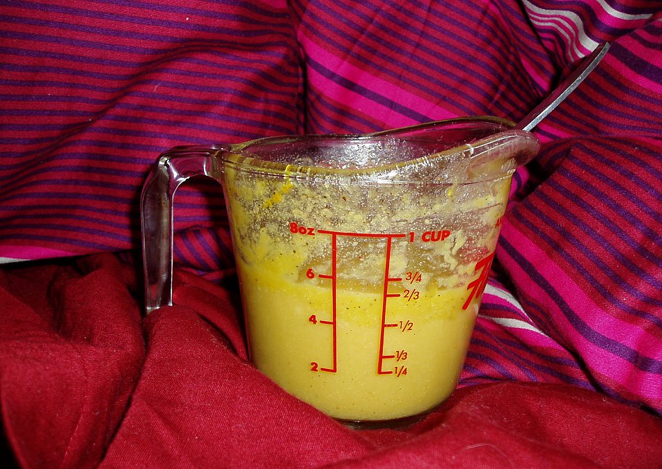 I used this as a sauce on kelp noodles, with apple, carrot, and cucumber slices. Wow--what a flavour! So strong! So rich! I used 1 1/2 tablespoons raw honey instead of the pollen, though hesitatantly because I don't like using animal products. I couldn't even really taste the honey though--the ground mustard flavour was so strong! I would probably recommend using less ground mustard.