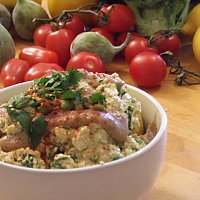 By amberablue I wasn't even trying to make a curry though I LOVE Indian food! I was just at the market thinking up a stuffed tomato salad with perhaps a vague Morrocan theme, and happened to pick up some Indian spices for future use.