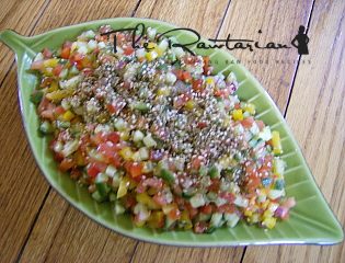 I swapped the peppers for raw corn and added garbanzos ( I used cooked), and hemp seeds