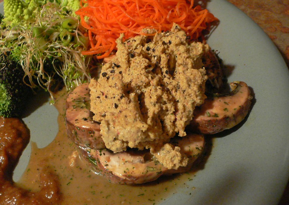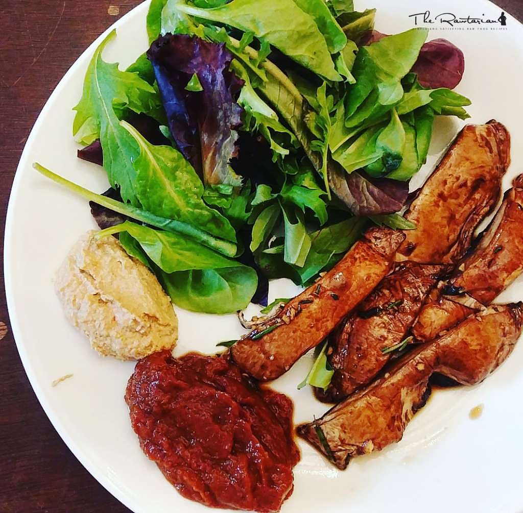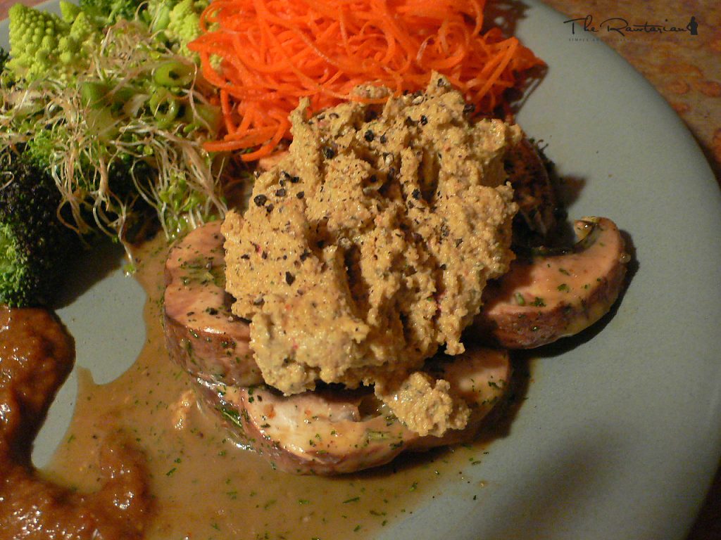 This idea came from a blend of Rhio’s mushroom steak recipe and my own recipe for marinade for actual steak, which I am forced to make anytime anyone in my house comes home with a London broil for the barbecue. I just threw things together for the cheese (I quit using cashews!), and it turned out tasting like...