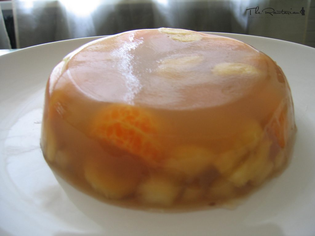 This is a vegan version of gelatin using agar powder. The agar needs to be heated in low for at least 5 minutes, after soaking in cold water for about 10 minutes. The only thing heated is the agar. So I guess it cannot be said it is 100% raw. We eat it as breakfast today after having a fresh squeezed ruby grapefruit...