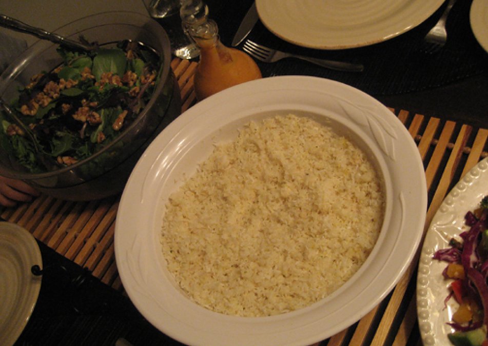 I served this “rice” with thai veggies for a raw dinner party I hosted last night and it was a huge hit. Even the kids gobbled it up. This recipe will keep in the refrigerator for several days and can be used in much the same way as cooked rice. I’ve left out the coconut and made dishes like raw paella and Spanish...
