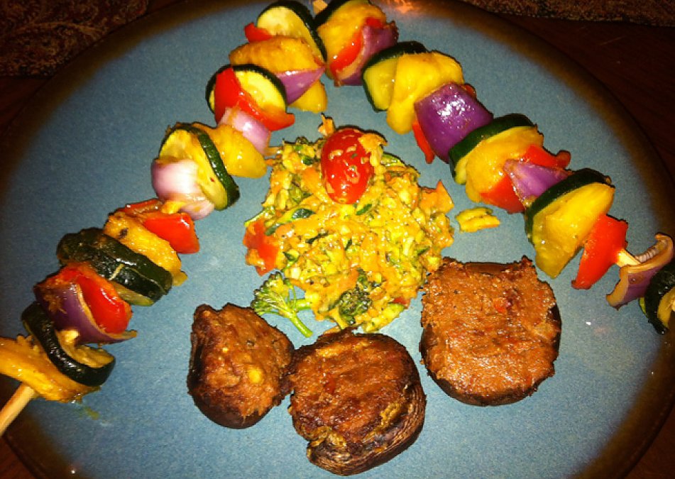 By amandanicolesmith The pineapple sauce and stuffed mushrooms are inspired by therawchef.com