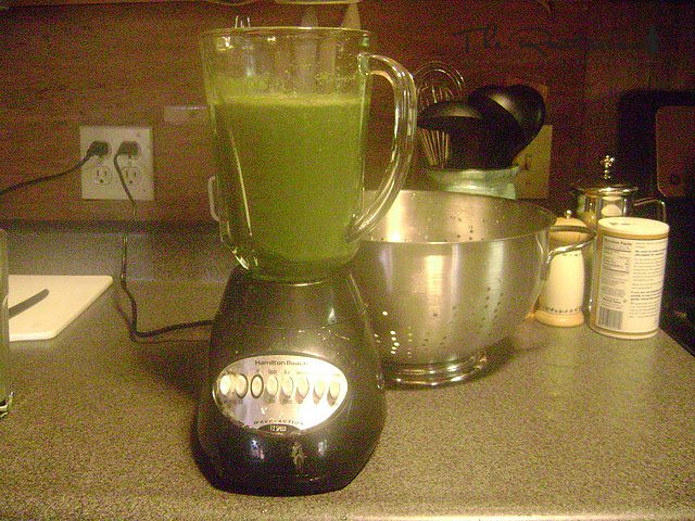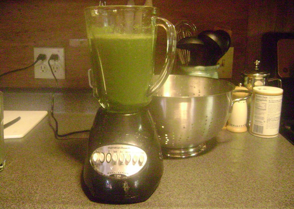 By jenergy This is me cleaning out the fridge on shopping day. It’s not very sweet… if you like your green smoothies sweeter you could add some agave or your sweetener of choice… maybe apple or pineapple juice instead of the water?
