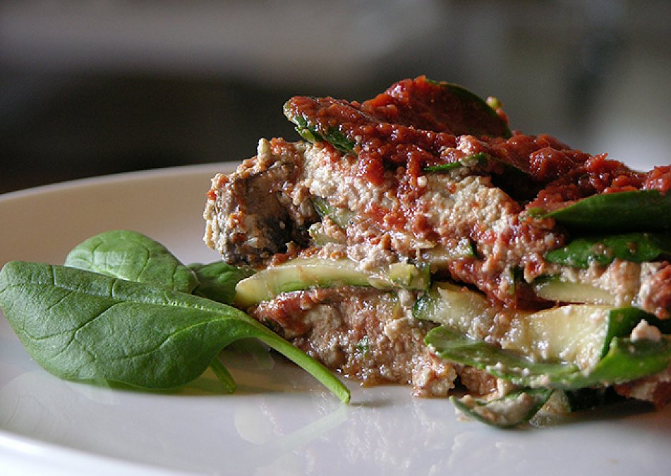 A flavorful raw lasagna, best made one day in advance. Taking into account the time to make the sunflower pate, this recipe will be ready to eat a couple days after you begin your first soaking. Ingredients include a marinara sauce and sunflower pate. Recipe inspired from Nomi Shannon, The Raw Gourmet.
