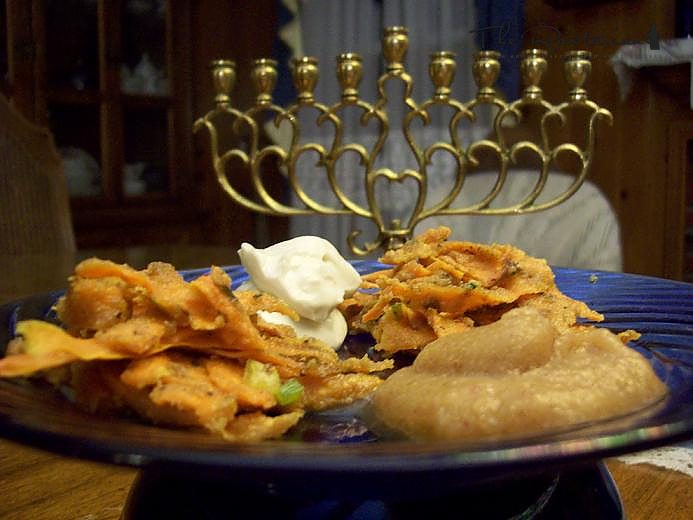 It's Channukah and I really love Latkes (potato pancakes that are a Chanukah tradition) so I made up a recipe and it really satisfies the latke craving! I thought about calling them raw-tkes but that kind of sounds like a disease!