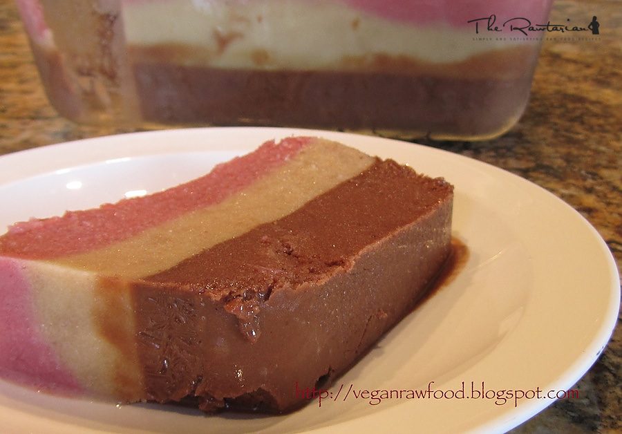By VeganRawFood This is a banana soft serve ice cream Neapolitan loaf.