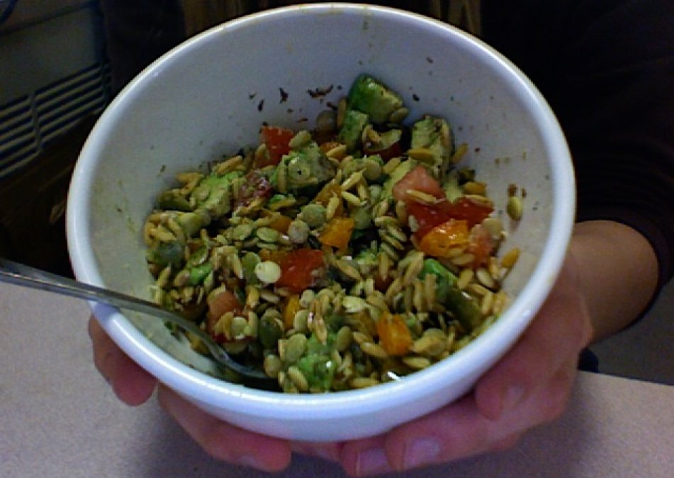 By KelleyS I was sprouting kamut to have for breakfast, and then the finished result kinda reminded me of brown rice. I decided to mix it with my lentil sprouts and toss in some chopped veggies! DELICIOUS!
