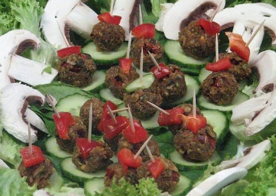 This was my first burger I've made to a potluck in Hungary (Budapest). Pictured with sliced mushrooms and with salad.
