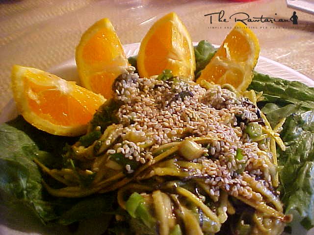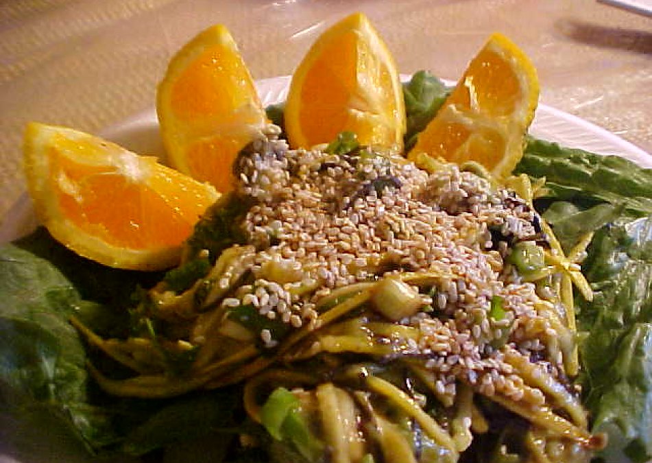 This was inspired by my taste for Oriental food. The avocado makes it creamy, and the dressing makes it sweet and sour.