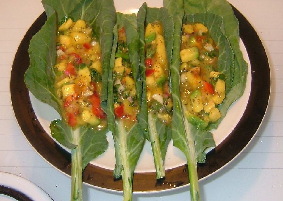 Long green leaves of choice (collards, romaine lettuce, or kale)