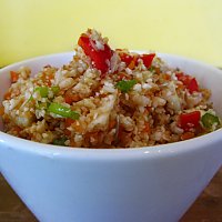 1. Pulse cauliflower in food processor until it's the size of rice. Or chop finely if you don't have a processor. Place in large bowl.