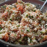 process onions, red peppers & garlic.. then add to the mix, along w/ olive oil.. salt & pepper