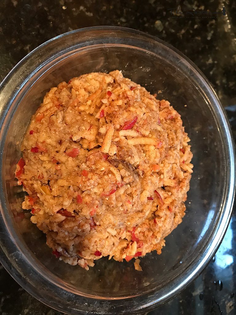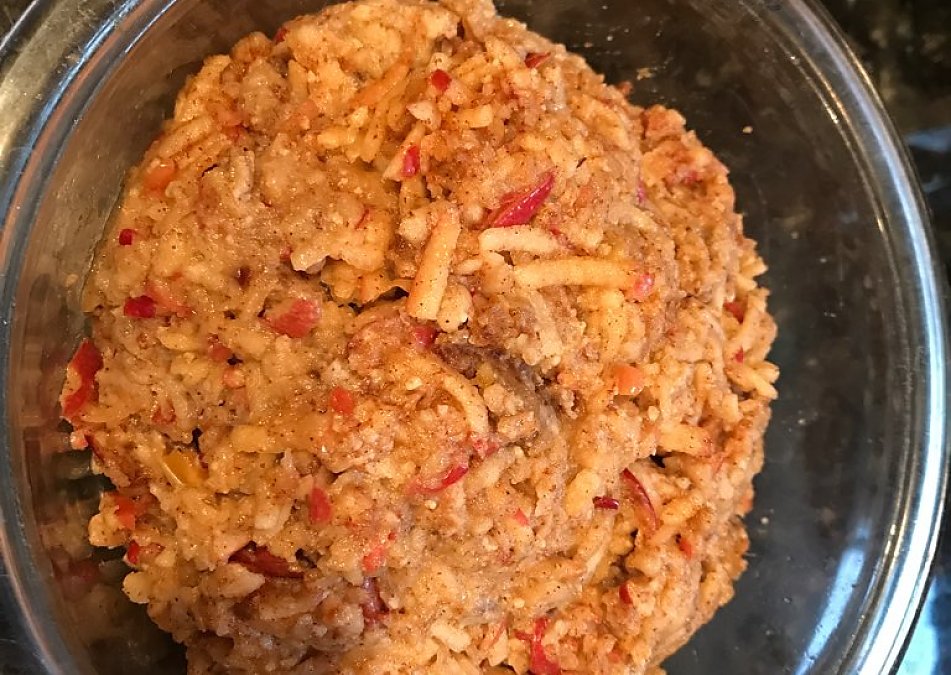 This is served as a condiment at Passover but I eat it as a meal year- round! The original recipe adds sweet wine to the mix.