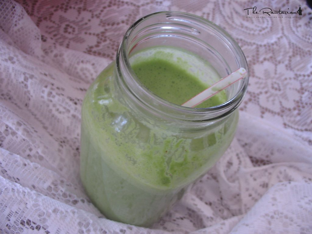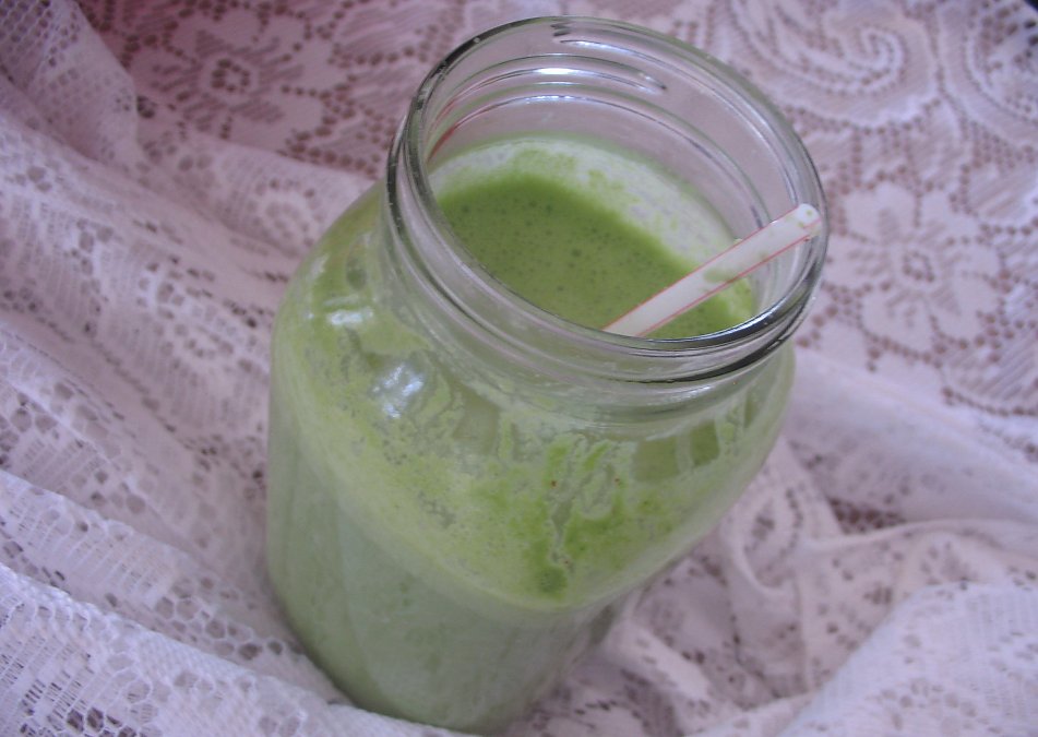 This is a nice, banana-less drink that seriously tastes like buttermilk (oh, sweet memories), only green! Add a lot of almond milk to thin, because it’ll seriously make you think you’re drinking something “milky”, not a thick green shake. A very refreshing change. Enjoy!