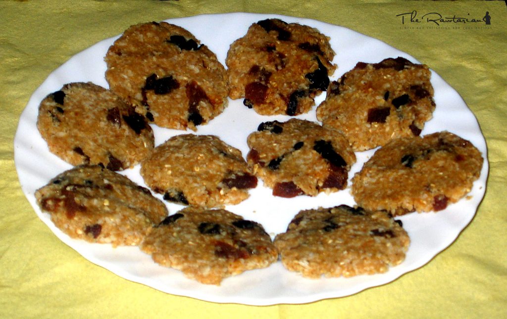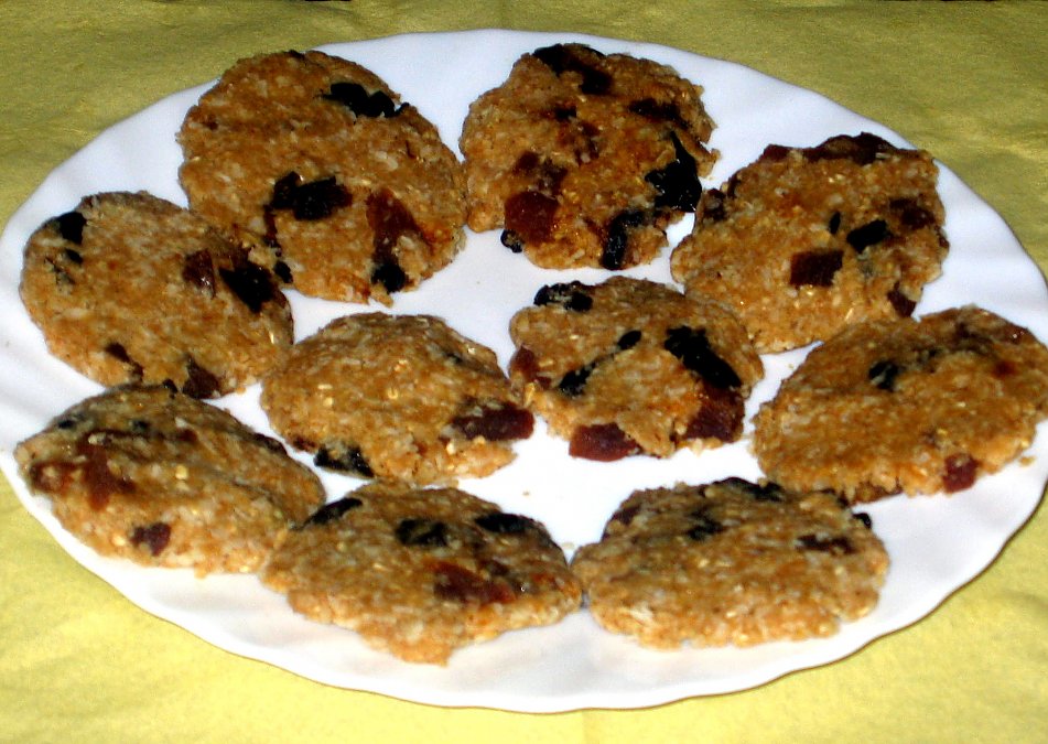I love cookies. The recipes on this website and other websites have inspired me of making my own raw cookies. I love oatmeal, and specially in cookies, so I came up with this recipe. Chewy and firm apricot-prunes cookies--no need for dehydration and with oatmeal (soaked raw steal-cut oat groats). A...