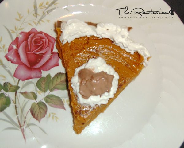 This is incredible!!! Don't waste your body on cooked pumpkin pie. You could bring this to a holiday event and most people would not even know the difference.