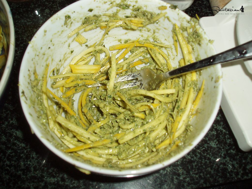 By bitt I have been altering vegan pesto recipes for years to get the perfect one. The key is the avocado which makes is creamy. Excuse the picture, I had already eaten half before I realized I should take a photo.