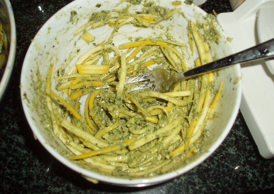 I put this on top of julienned squash. The smaller the squash the sweeter it will be. Stir around and enjoy!