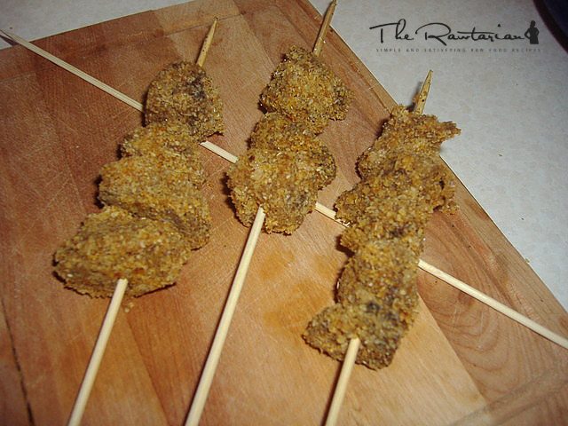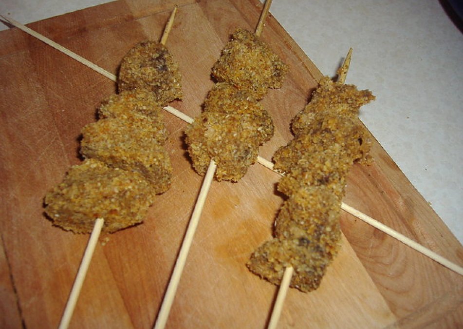 Dip the mushroom nugets into the marinate then into the “breadcrumbs”