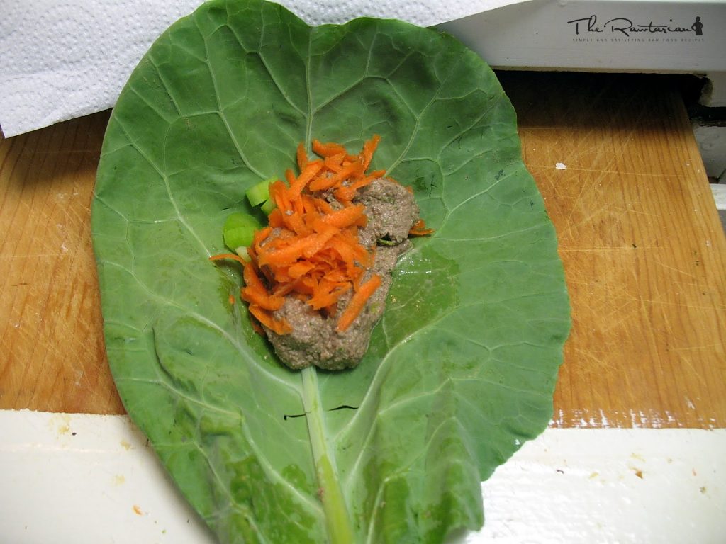 this is my first raw recipe, so tell me how you like it. i must caution that this pate means business and is for serious mushroom-lovers only. i slapped it onto a collard leaf with celery and carrot.
