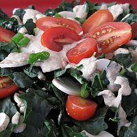 Mix about 1/4 dressing with the salad blend and reserve the rest of the dressing to pour over greens or for another use.